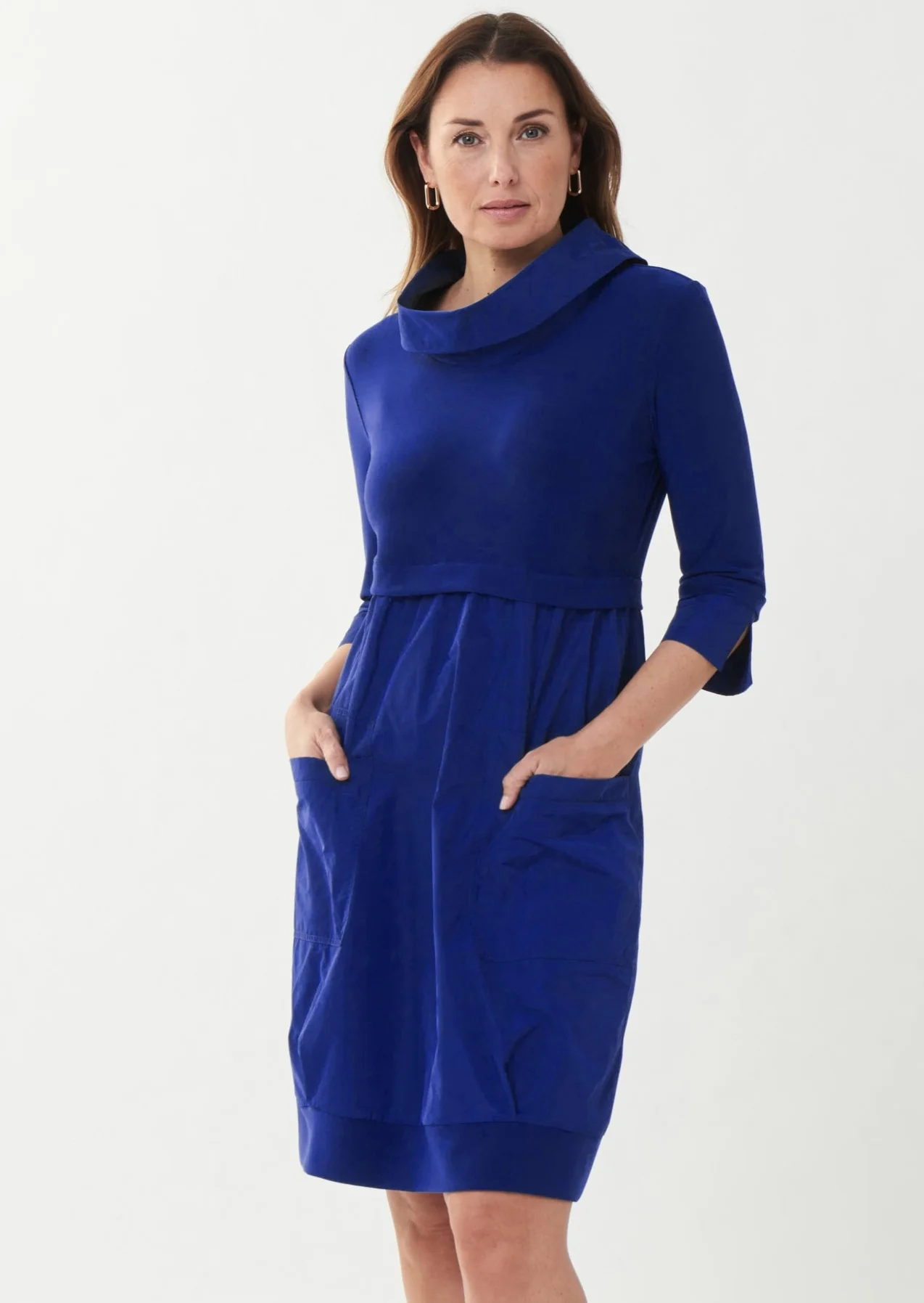 - Pockets, cowl neck