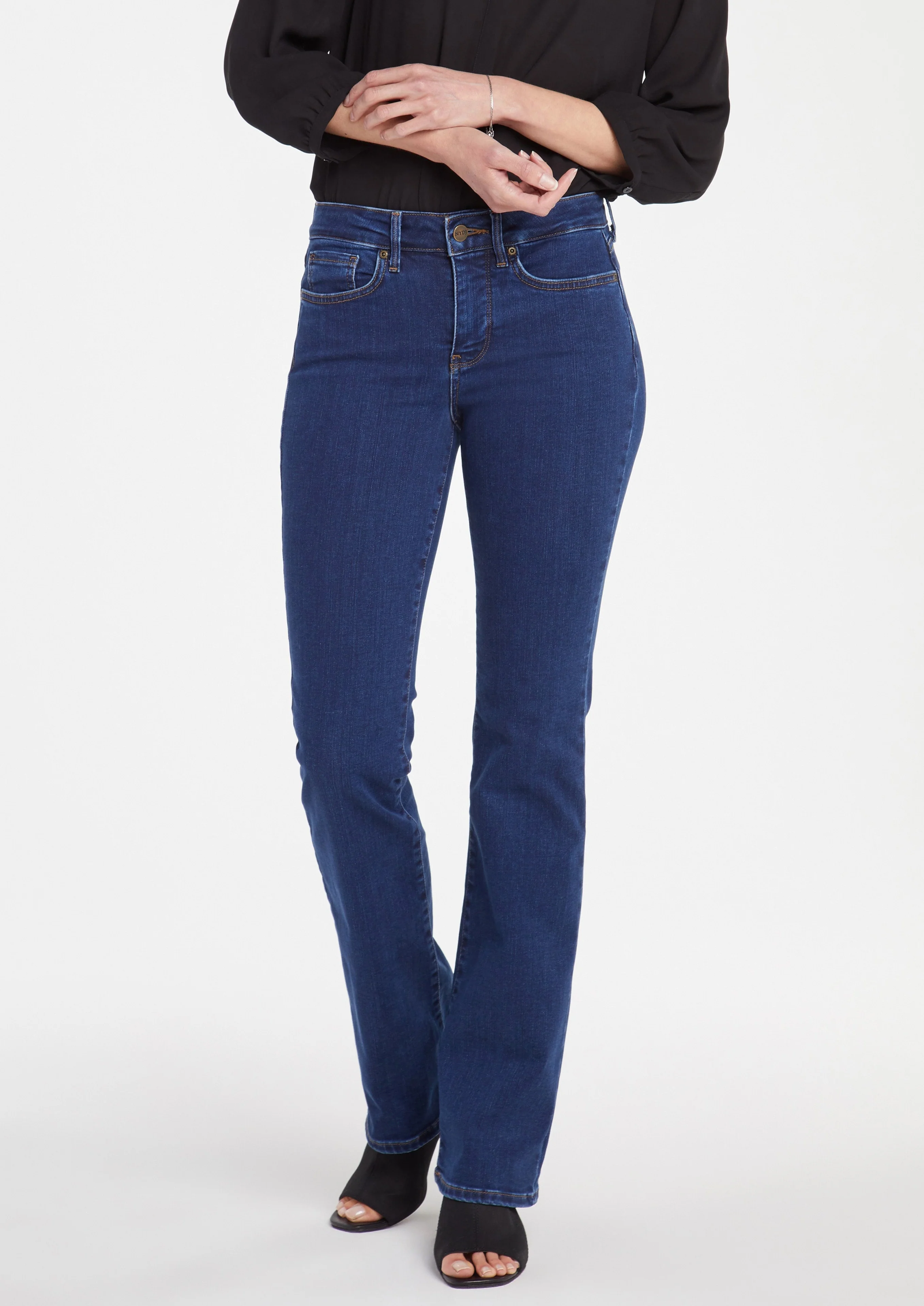 Not too long, not too short—NYDJ's Barbara Bootcut Jeans fit just right. Our exclusive Lift Tuck® Technology uses a proprietary slimming panel with a patented criss-cross design to give this comfortable, go-to style its superior shaping powers. The traditional bootcut fit gives you a flattering legs-for-days look—and makes these jeans an effortless closet staple. Finished with classic five-pocket styling, zip fly and button closure. (COPYRIGHT NYDJ 2022)