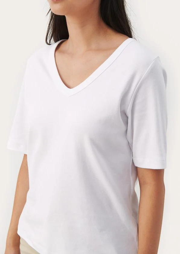 Introducing your new go-to essential - Part Two's Ratansa V-neck Top. Made from ultra soft 100% organic cotton, this basic everyday t-shirt is versatile and easy to wear. Upgrade your wardrobe with comfort and sustainability in mind.