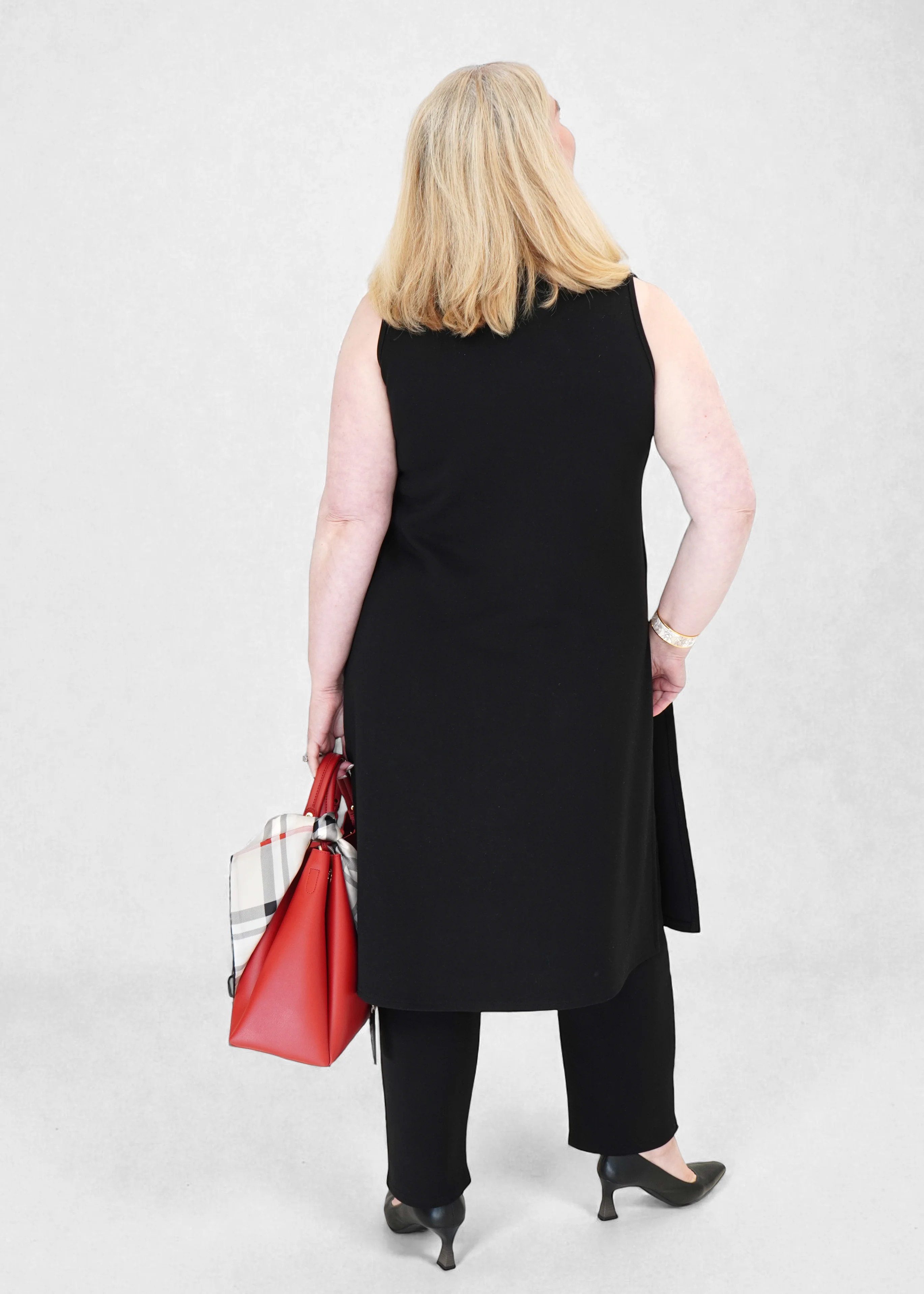 The ultimate layering essential, the Scuba Stephanie Over Under Tunic is designed to elevate your wardrobe with ease. This sleeveless style features a flattering scoop neckline, high side slits for added movement, and a clean straight hem. Layer it under your favorite pant or leggings—crafted in smooth scuba fabric for comfort and style in one versatile silhouette.