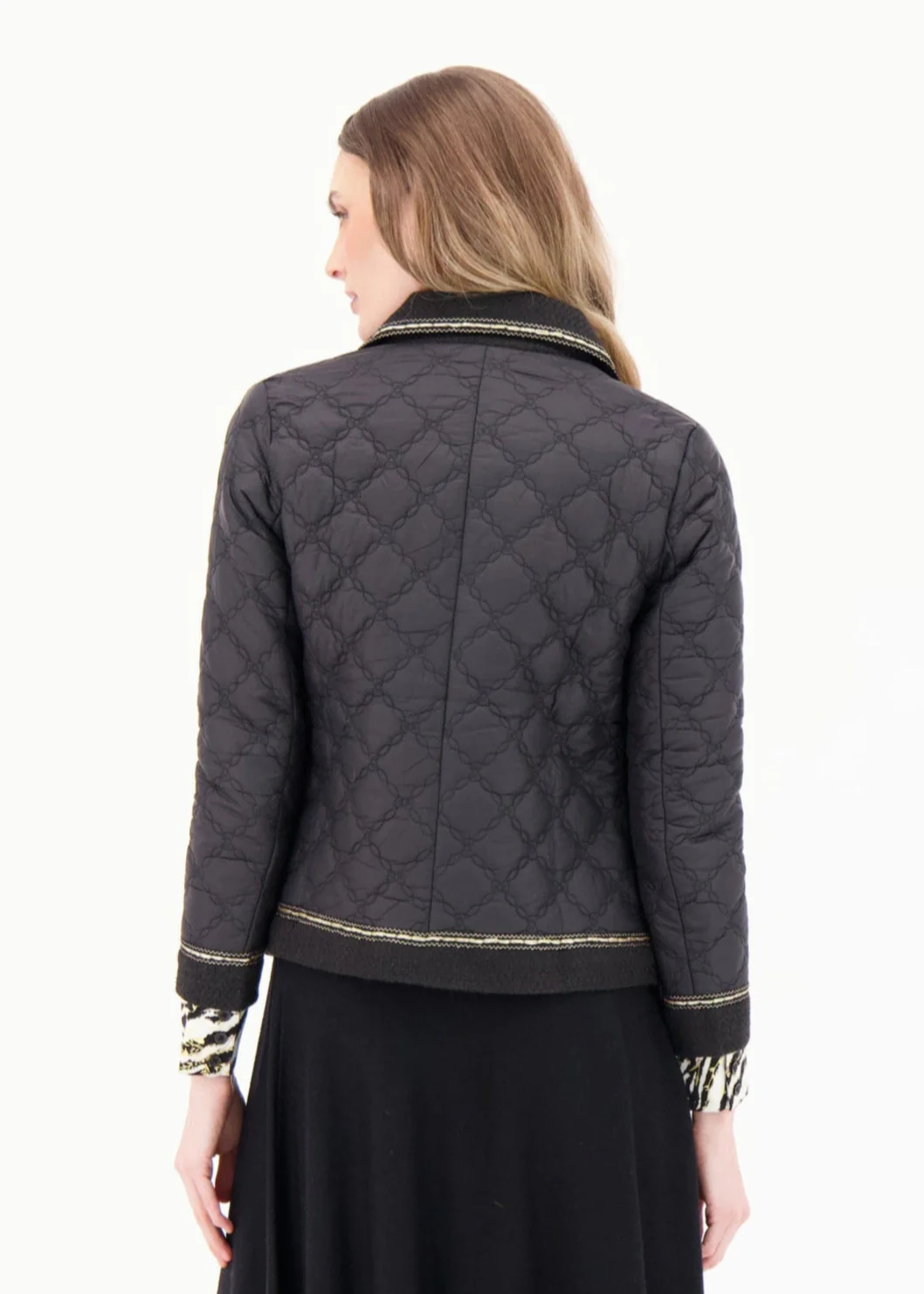 This black quilted jacket combines a timeless design with chic sophistication. Enhanced by subtle gold hardware, it adds an elevated touch of luxury to your look. (Copyright Spanner 2025)