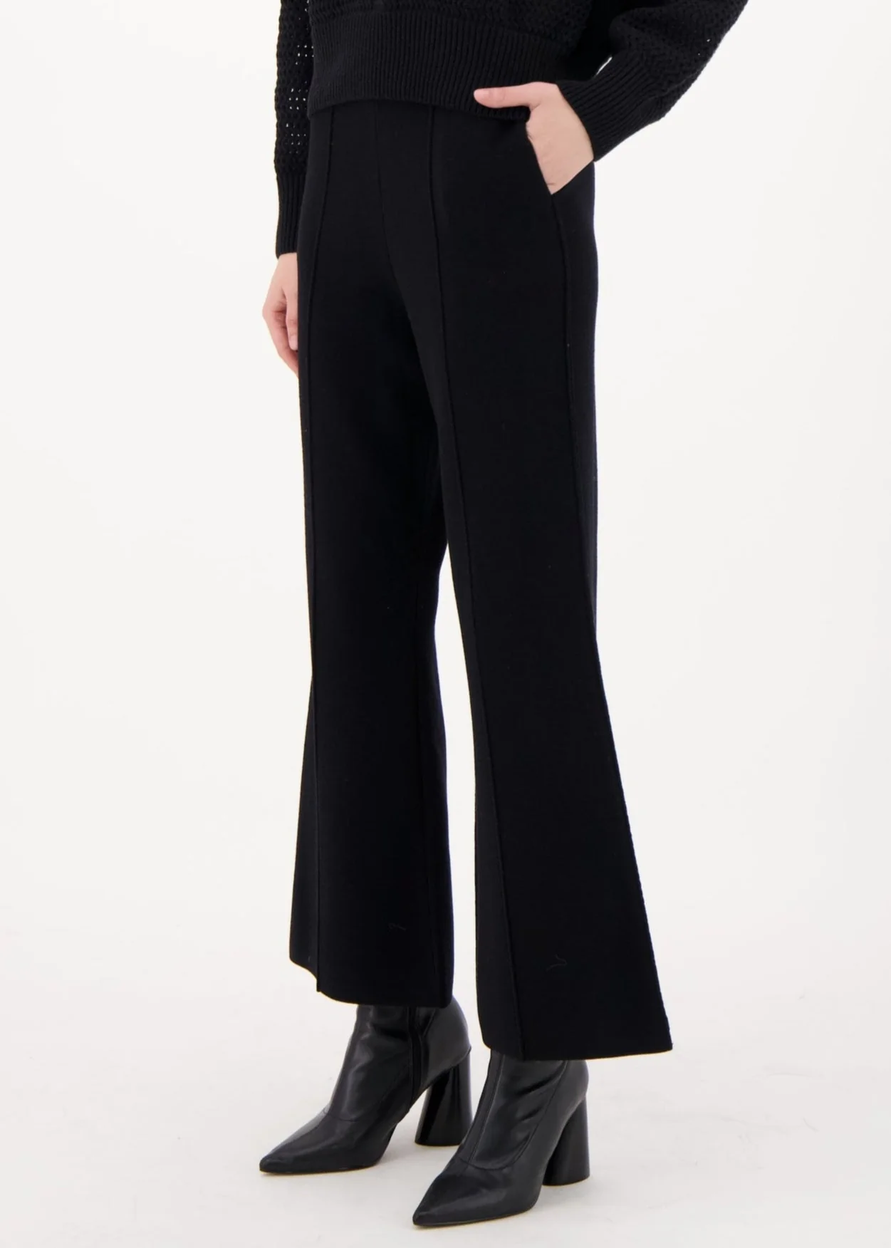 A must-have knit pant for Fall/Winter. Versatile and ultra-comfy, featuring a pull-on elastic waistband and pockets. The slightly flared straight leg instantly elevates any look! (Copyright Spanner 2025)