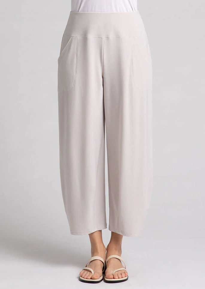 The Narrow Lantern Pant styles perfectly with shorter tops and accentuates the high waisted yoke waistband. Sitting at ankle length with stitched down pockets, with lantern shape at hem, we guarantee this will be your new favourite go to pant. A wide, ankle-length pant designed with a comfy yoke waistband and stitched down pockets. Crafted from Sympli's famous Jersey fabric that's versatile and drapes effortlessly across the body. (COPYRIGHT SYMPLI 2026)